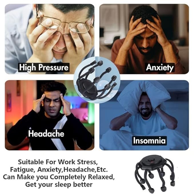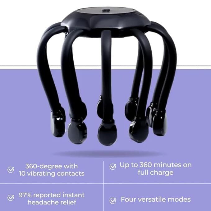 Relieves Headaches, Enhances Sleep, and Reduces Stress: Experience the bliss of headache relief, better sleep quality, and stress reduction with every use of the BLISSCLOUD Octopus Electric Head Massager.