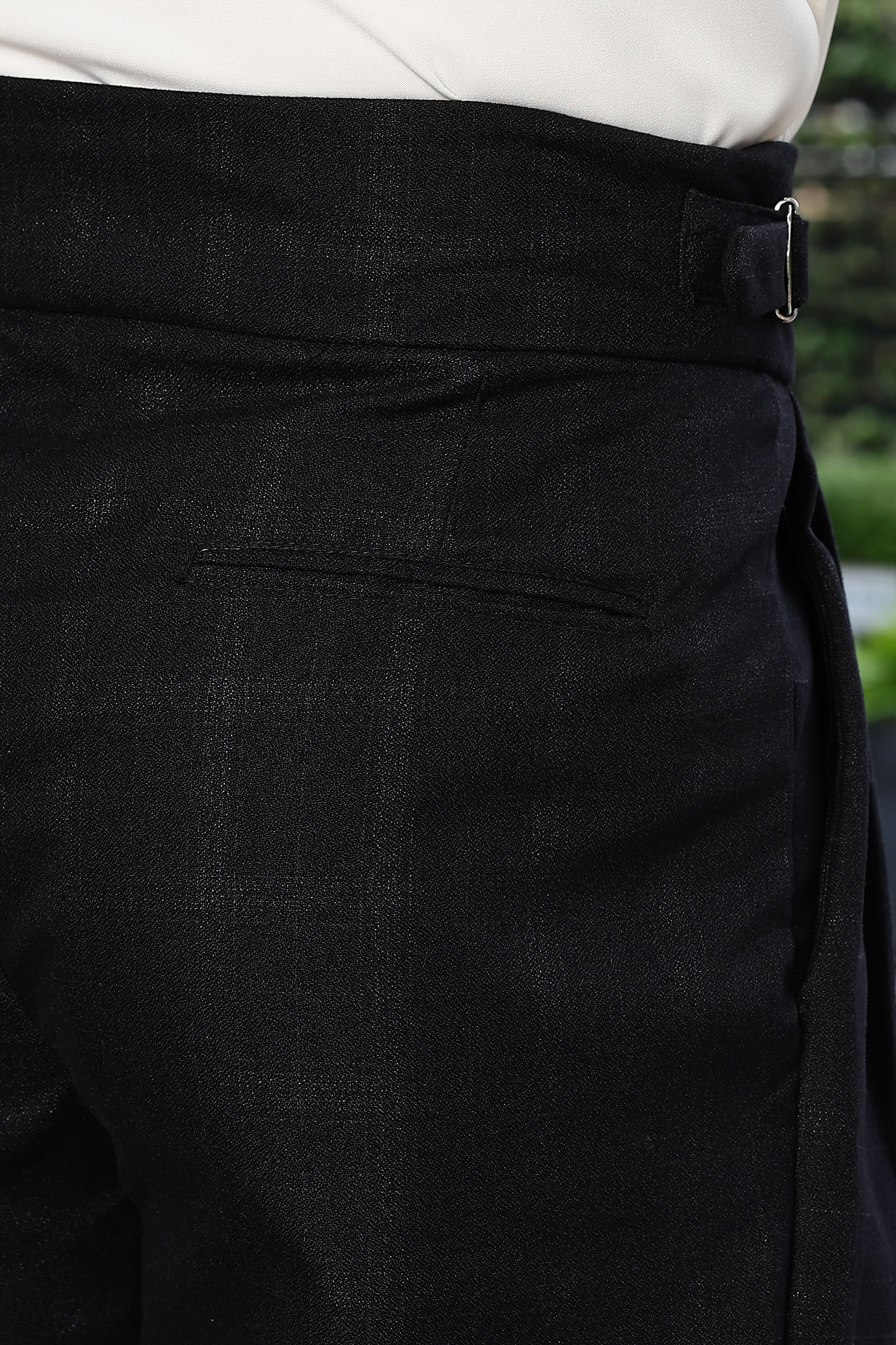 The iconic Gurkha high-rise waistband, paired with a double pleated front, creates a sharp, tailored silhouette that flatters effortlessly. Designed in a deep black tone, these trousers pair seamlessly with shirts, blazers, knitwear, or even statement jackets for a polished, versatile look.
