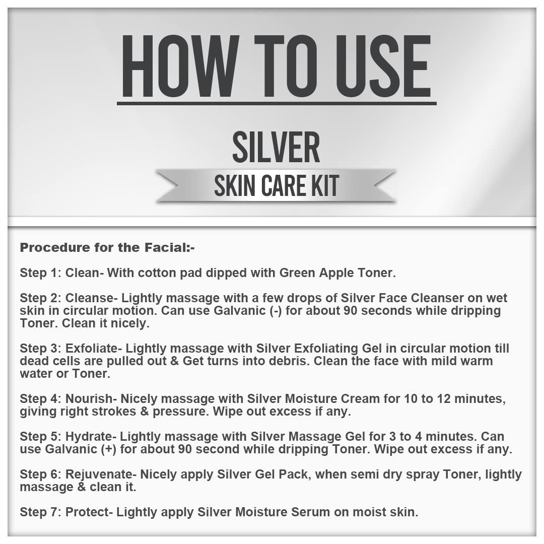 - ☛ This silver facial kit not only maintains the skin's natural pH balance and also helps clear the pores and deep cleanses the face to minimize blackhead production, it helps to keep your skin against blemishes and dark spots, as well as aging wrinkles and gives you a clean, ageless, radiant, natural-looking face.